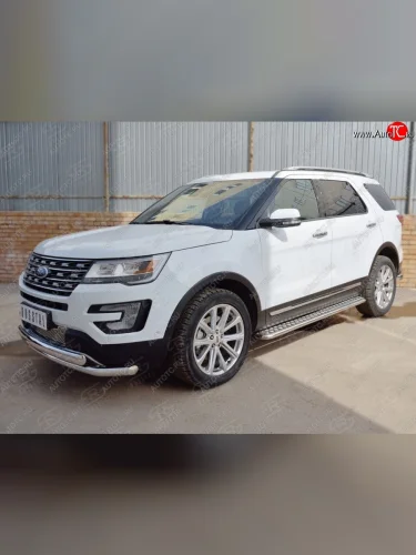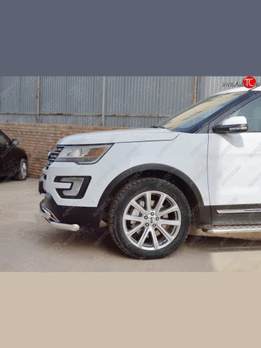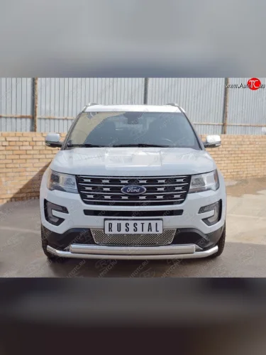 Защита переднего бампера (2 трубыØ63 и 75х42 мм, нержавейка) Russtal Ford Explorer U502 1-ый рестайлинг, 5 дв. (2015-2018) в Самаре Самарской области