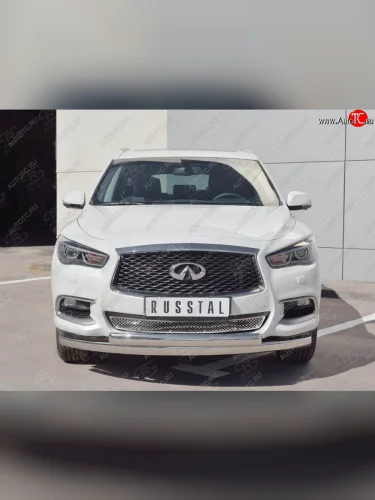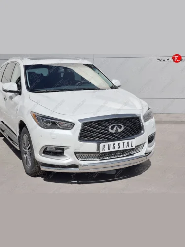 Защита переднего бампера (2 трубыØ63 и 75х42 мм, нержавейка) Russtal INFINITI QX60 L50 рестайлинг (2016-2021) в Самаре Самарской области