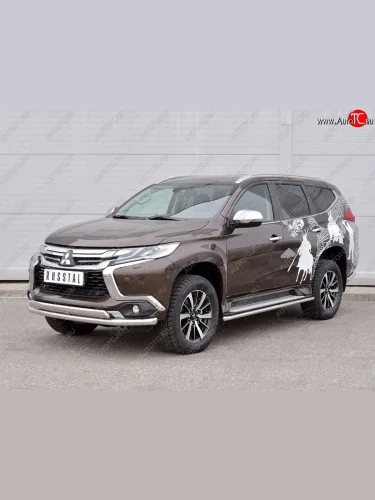 Защита переднего бампера (2 трубыØ63 и 75х42 мм, нержавейка) Russtal Mitsubishi Pajero Sport QE дорестайлинг (2015-2021) в Самаре Самарской области