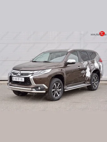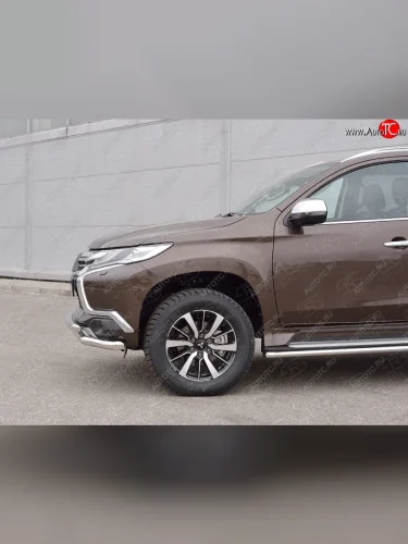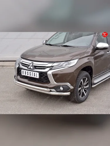 Защита переднего бампера (2 трубыØ63 мм, нержавейка) SLITKOFF Mitsubishi Pajero Sport (2015-2021) QE в Самаре Самарской области