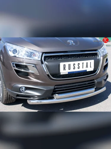 Защита переднего бампера (2 трубыØ63 мм, нержавейка) SLITKOFF Peugeot 4008 (2012-2017) в Самаре Самарской области