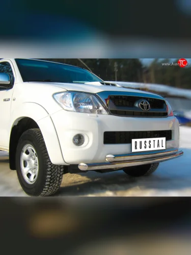 Защита переднего бампера (2 трубыØ63 мм, нержавейка) SLITKOFF Toyota Hilux (2008-2011) AN10,AN20 в Самаре Самарской области