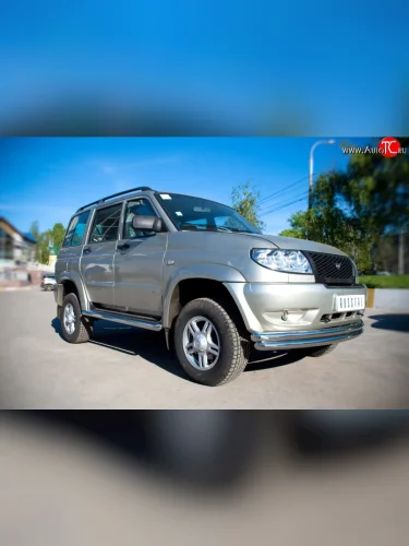 Защита переднего бампера (2 трубыØ63 мм, нержавейка) SLITKOFF Уаз Патриот (2005-2013) 3163 5 дв. в Самаре Самарской области