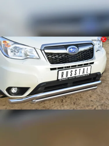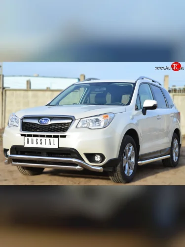 Защита переднего бампера (2 трубыØ63 мм, волна, нержавейка) SLITKOFF Subaru Forester SJ дорестайлинг (2012-2016) в Самаре Самарской области