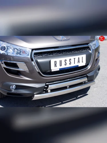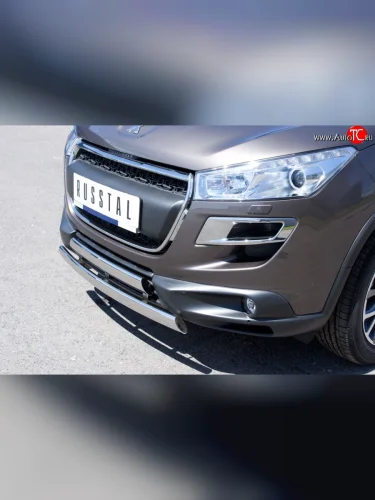 Защита переднего бампера (2 трубыØ75х42 мм, нержавейка) Russtal Peugeot 4008 (2012-2017) в Самаре Самарской области