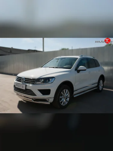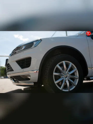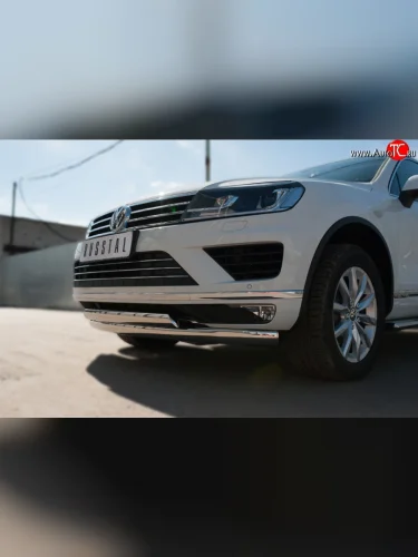 Защита переднего бампера (2 трубыØ75х42 мм, нержавейка) Russtal Volkswagen Touareg 2 NF рестайлинг (2014-2018) в Самаре Самарской области