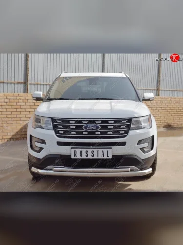 Защита переднего бампера (2 трубыØ76 и 42 мм, нержавейка) SLITKOFF Ford Explorer U502 1-ый рестайлинг, 5 дв. (2015-2018) в Самаре Самарской области