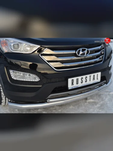 Защита переднего бампера (2 трубыØ76 и 42 мм, нержавейка) SLITKOFF Hyundai Santa Fe (2012-2016) DM в Самаре Самарской области