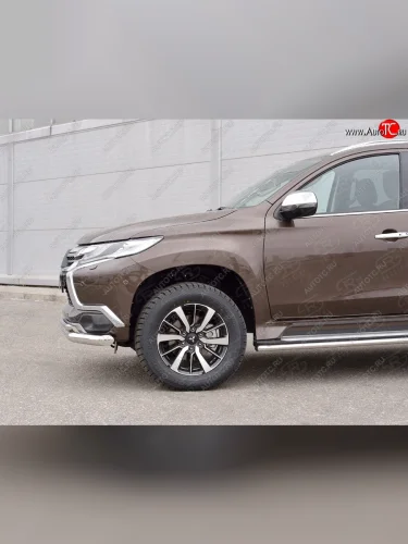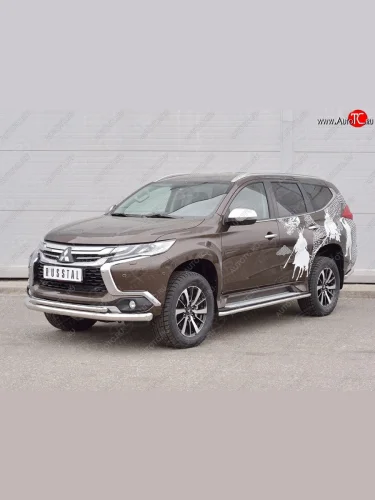 Защита переднего бампера (2 трубыØ76 и 42 мм, нержавейка) SLITKOFF Mitsubishi Pajero Sport (2015-2021) QE в Самаре Самарской области