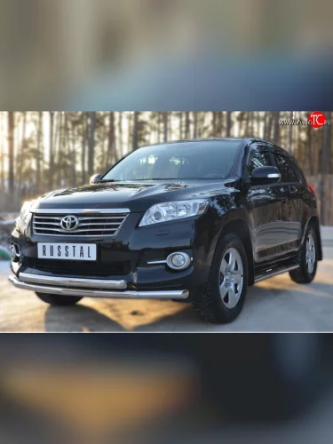 Защита переднего бампера (2 трубыØ76 и 42 мм, нержавейка) SLITKOFF Toyota RAV4 (2010-2013) XA30 в Самаре Самарской области