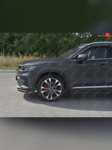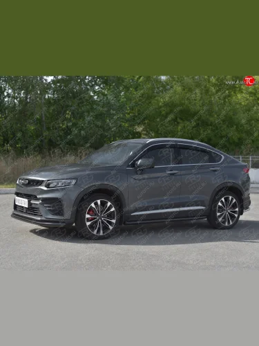 Защита переднего бампера (Ø57 мм) SLITKOFF Geely Tugella FY11,HPBA4 дорестайлинг (2019-2023) (нержавейка с полимерным покрытием, черный) в Самаре Самарской области