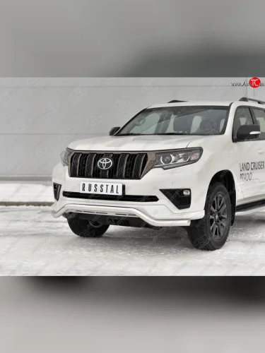 Защита переднего бампера (Ø63 мм волна, нержавейка, BLACK ONYX) SLITKOFF Toyota Land Cruiser Prado (2020-2025) J150 в Самаре Самарской области