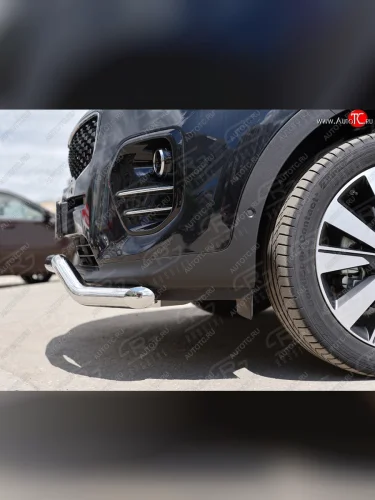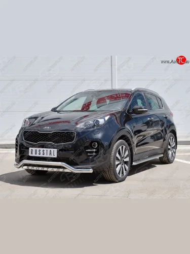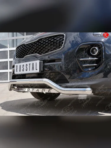 Защита переднего бампера (Ø63 мм волна с надписью, нержавейка) SLITKOFF KIA Sportage (2016-2018) 4 QL в Самаре Самарской области