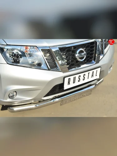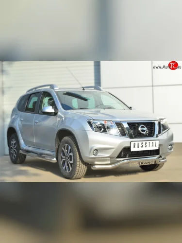 Защита переднего бампера (Ø63 мм волна с надписью, нержавейка) SLITKOFF Nissan Terrano (2013-2022) D10 в Самаре Самарской области