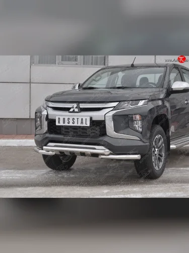 Защита переднего бампера (Ø63 с клыками, нержавейка) SLITKOFF Mitsubishi L200 (2018-2022) 5 KK,KL в Самаре Самарской области