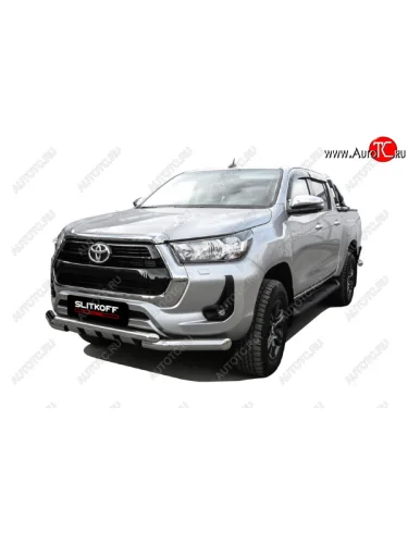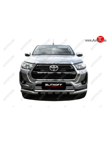 Защита переднего бампера Slitkoff (Ø 76+Ø 57, двойная с профильной ЗК). Toyota Hilux (2017-2020) AN120 в Самаре Самарской области