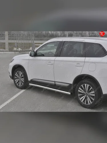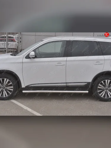 Защита порогов (Ø63 мм, нержавейка) SLITKOFF Mitsubishi Outlander (2018-2022) GF (С пластиковыми заглушками на торцах) в Самаре Самарской области