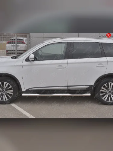 Защита порогов (Ø76 мм с проступью, нержавейка) SLITKOFF Mitsubishi Outlander GF 3-ий рестайлинг (2018-2022) (Металлические торцы под 90°) в Самаре Самарской области