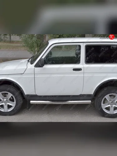 Защита порогов (Ø76 с проступью, нержавейка) SLITKOFF Лада ВАЗ нива 4х4 2131 Урбан 3 дв. дорестайлинг (2014-2019) (вариант 3) в Самаре Самарской области