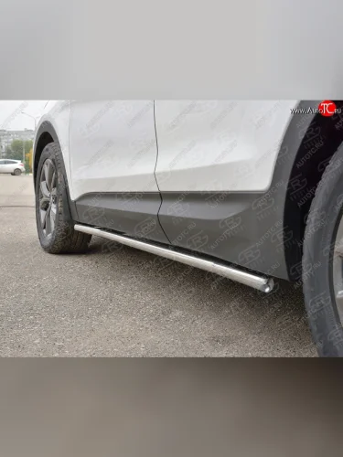 Защита порогов из круглой трубы d42 мм PREMIUM SLITKOFF v3 Hyundai Santa Fe (2015-2019) DM в Самаре Самарской области