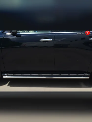 Защита порогов из круглой трубы диаметром 42 мм (рестайлинг) SLITKOFF Nissan Patrol 6 Y62 дорестайлинг (2010-2014) в Самаре Самарской области