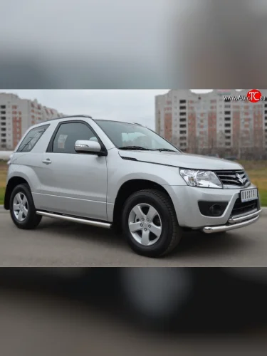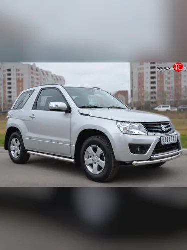 Защита порогов из круглой трубы диаметром 63 мм (3 дв.) Russtal Suzuki Grand Vitara JT 3 двери 2-ой рестайлинг (2012-2016) (Защита порогов с со скосами на торцах (вариант 1)) в Самаре Самарской области