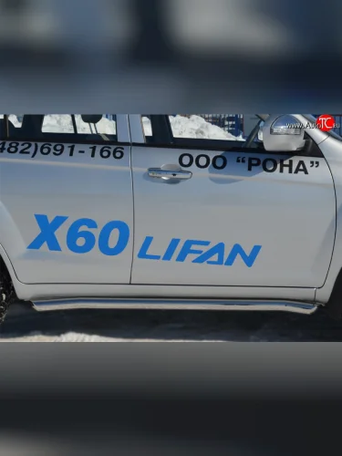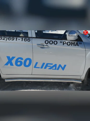 Защита порогов из круглой трубы диаметром 63 мм Russtal Lifan X60 дорестайлинг (2011-2015) (Защита порогов с со скосами на торцах (вариант 1)) в Самаре Самарской области