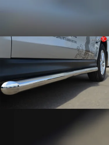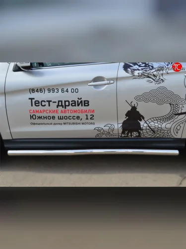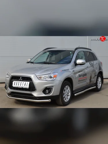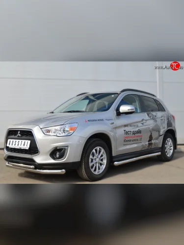 Защита порогов из круглой трубы диаметром 63 мм Russtal Mitsubishi ASX 1-ый рестайлинг (2013-2016) (Защита порогов с со скосами на торцах (вариант 1)) в Самаре Самарской области