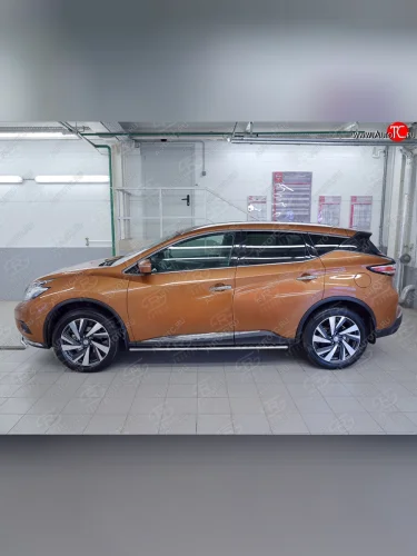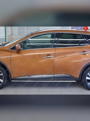 Защита порогов из овальной трубы диаметром 75x42 мм с проступью Russtal Nissan Murano 3 Z52 дорестайлинг (2015-2022) в Самаре Самарской области