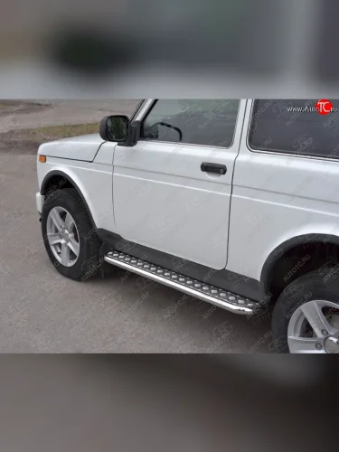 Защита порогов из трубы с листом SLITKOFF (лист алюм, труба d42, стальная). Лада ВАЗ нива 4х4 (2014-2021) 2131, 2121 в Самаре Самарской области