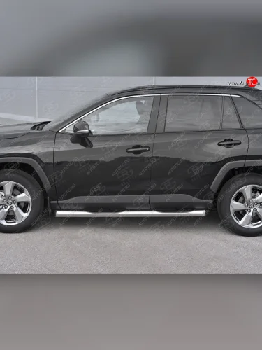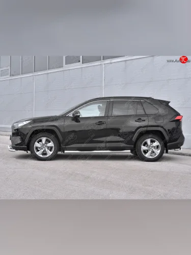 Защита порогов на SLITKOFF d76 с накладкой Toyota RAV4 (2018-2025) XA50 (защита порогов со скосами на торцах) в Самаре Самарской области