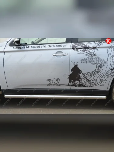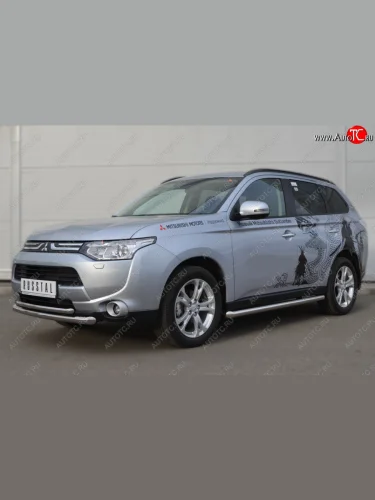 Защита порогов на SLITKOFF (труба D63) Mitsubishi Outlander (2012-2014) GF (Защита порогов с со скосами на торцах (вариант 1)) в Самаре Самарской области