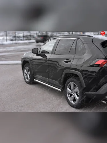 Защита порогов на SLITKOFF труба d63 Toyota RAV4 (2018-2025) XA50 (защита порогов с заглушками на торцах) в Самаре Самарской области
