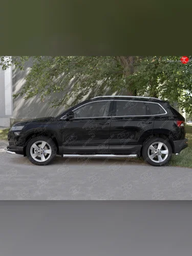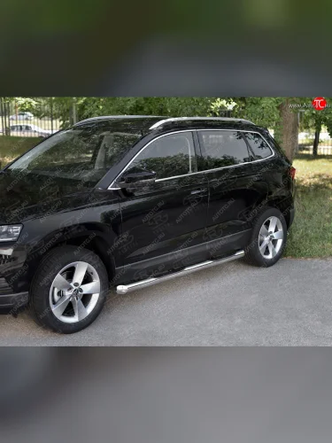 Защита порогов на SLITKOFF труба d76 с накладкой Skoda Karoq NU7 рестайлинг (2020-2025) (защита порогов со скосами на торцах) в Самаре Самарской области