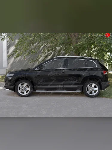 Защита порогов на SLITKOFF труба d76 с накладкой Skoda Karoq (2017-2025) NU7 (защита порогов с закругленными торцами) в Самаре Самарской области