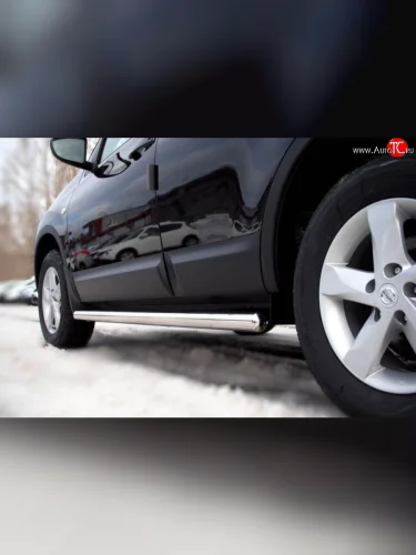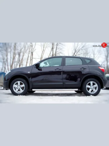 Защита порогов Russtal из трубы d63 мм с пластиковыми вставками для ног Nissan Qashqai 1 J10 рестайлинг (2010-2013) (Защита порогов с со скосами на торцах (вариант 1)) в Самаре Самарской области