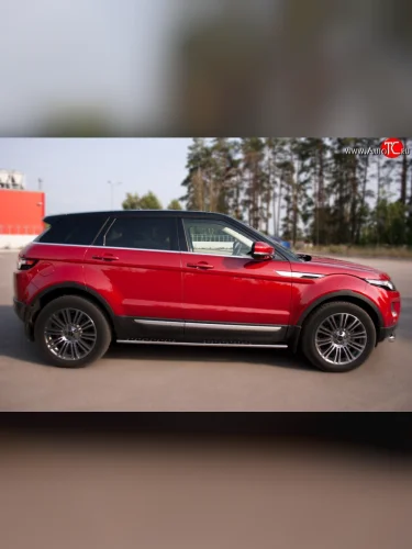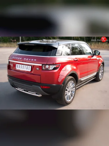Защита порогов с круглыми вставками для ног из овальной трубы диаметром 75x42 мм (Prestige u Pure) Russtal Land Rover Range Rover Evoque 1 L538 дорестайлинг 5 дв. (2011-2015) в Самаре Самарской области