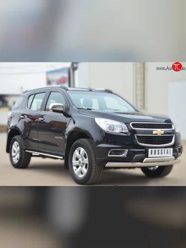 Защита порогов с круглыми вставками для ног из овальной трубы диаметром 75x42 мм Russtal Chevrolet Trailblazer GM800 дорестайлинг (2012-2016) в Самаре Самарской области