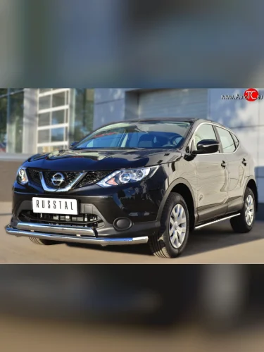 Защита порогов с круглыми вставками для ног из овальной трубы диаметром 75x42 мм Russtal Nissan Qashqai 2 J11 дорестайлинг (2013-2019) в Самаре Самарской области