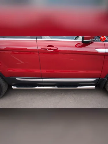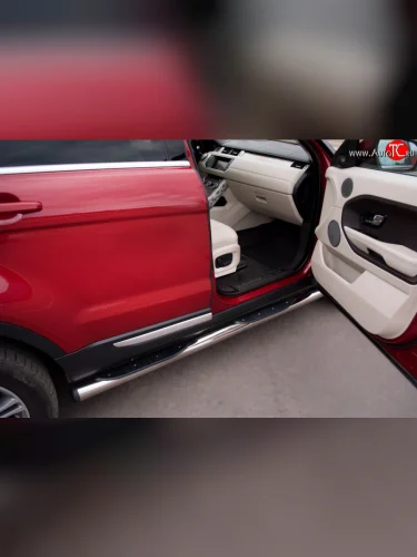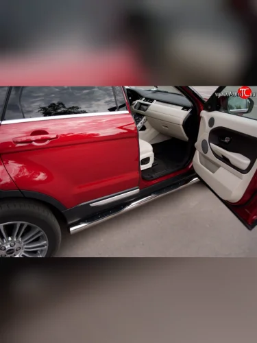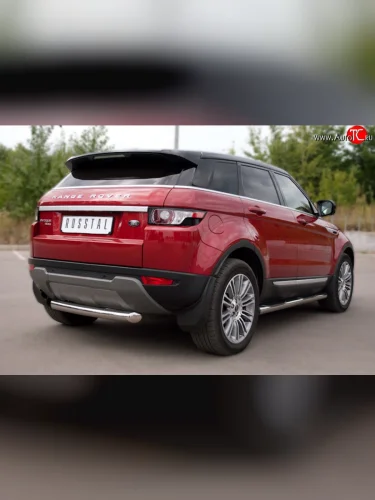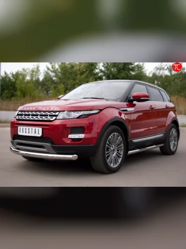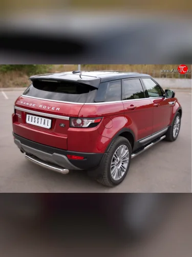 Защита порогов с пластиковыми вставками для ног из круглой трубы диаметром 76 мм (Prestige u Pure) Russtal Land Rover Range Rover Evoque 1 L538 дорестайлинг 5 дв. (2011-2015) (Защита порогов с со скосами на торцах (вариант 1)) в Самаре Самарской области