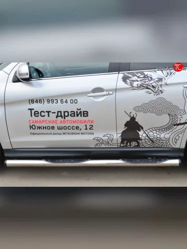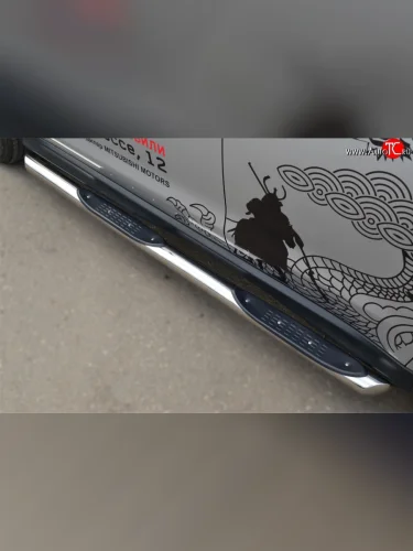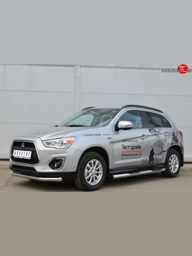Защита порогов с пластиковыми вставками для ног из круглой трубы диаметром 76 мм Russtal Mitsubishi ASX 1-ый рестайлинг (2013-2016) (Защита порогов с со скосами на торцах (вариант 1)) в Самаре Самарской области