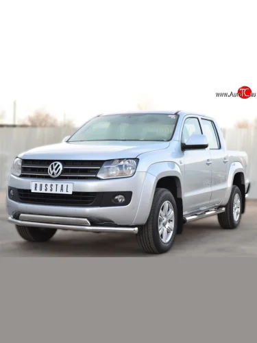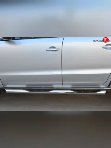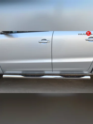 Защита порогов с пластиковыми вставками для ног из круглой трубы диаметром 76 мм Russtal Volkswagen Amarok дорестайлинг (2009-2016) (Защита порогов с со скосами на торцах (вариант 1)) в Самаре Самарской области