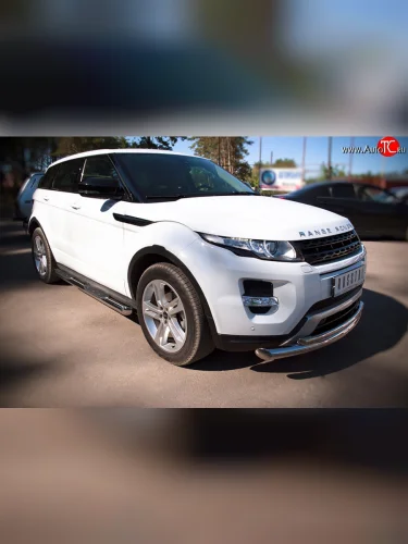 Защита порогов с пластиковыми вставками для ног SLITKOFF из круглой трубы диаметром 76 мм (Dynamic) Land Rover Range Rover Evoque 1 L538 дорестайлинг 5 дв. (2011-2015) в Самаре Самарской области