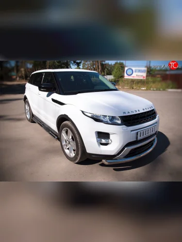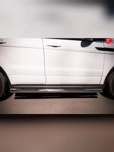 Защита порогов с пластиковыми вставками для ног SLITKOFF из круглой трубы с закругленными торцами диаметром 76 мм (Dynamic) Land Rover Range Rover Evoque 1 L538 дорестайлинг 5 дв. (2011-2015) в Самаре Самарской области