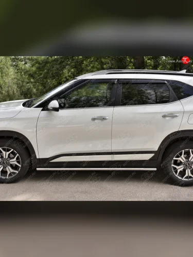 Защита порогов SLITKOFF (Ø63 мм, нержавейка) SLITKOFF KIA Seltos (2019-2025) (Металлические торцы под 90°) в Самаре Самарской области