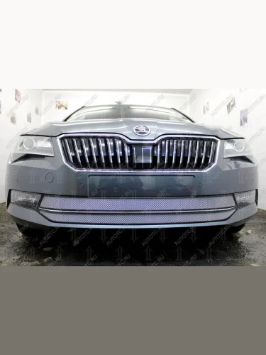 Защита радиатора (2 части) Стрелка11 Стандарт Skoda Superb B8 (3V) лифтбэк дорестайлинг (2015-2019) (хром) в Самаре Самарской области