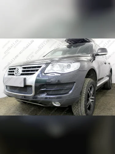 Защита радиатора (боковая 4 части) Стрелка11 Стандарт Volkswagen Touareg 1 GP рестайлинг (2006-2010) (черная) в Самаре Самарской области