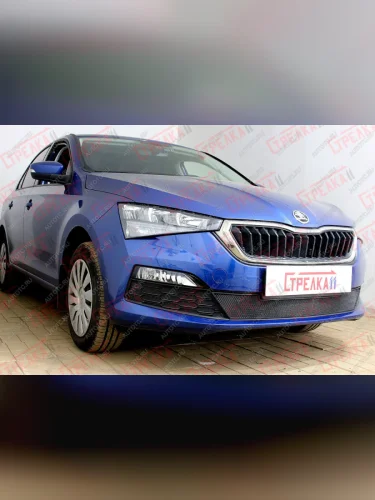 Защита радиатора (низ) Стрелка11 Стандарт Skoda Rapid MK2 хэтчбэк 5 дв. рестайлинг (2019-2024) (черная) в Самаре Самарской области