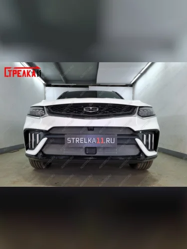 Защита радиатора (верх, с камерой) Стрелка11 Стандарт Geely Tugella FY11,HPBA4 рестайлинг (2022-2025) (хром) в Самаре Самарской области