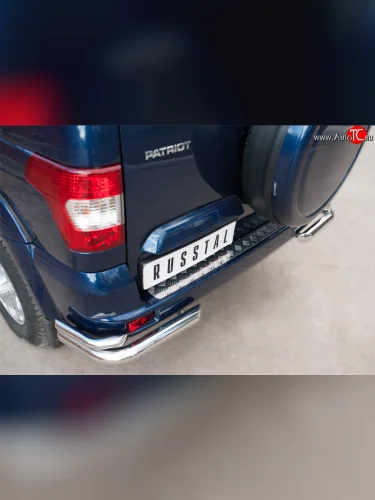 Защита заднего бампера (2 трубы Ø63 и 42 мм уголки, нержавейка) SLITKOFF Уаз Патриот (2014-2025) 3163 5-дв., 3163 5 дв. с доставкой в г. Самара